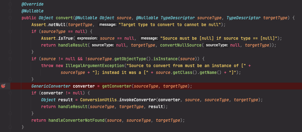 Spring 에서는 위 역할을 ConversionService 라는 곳에서 담당하고 있고 보통 우리가 요청 시 Conversion 하는 곳은 GenericConversionService 에서 진행된다.