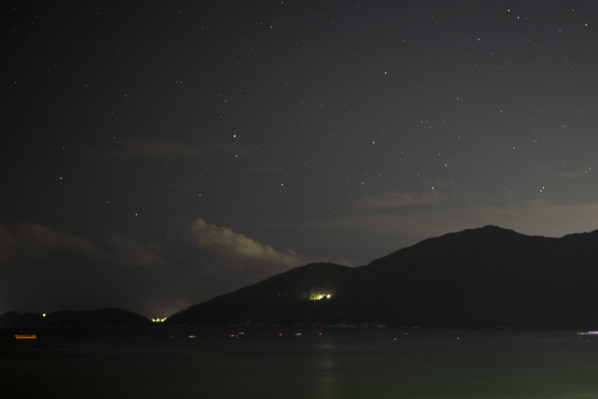 풍차를 등으로 해서 반대편의 별하늘을 담아봤다. 이때는 구름이 다소 있었다.