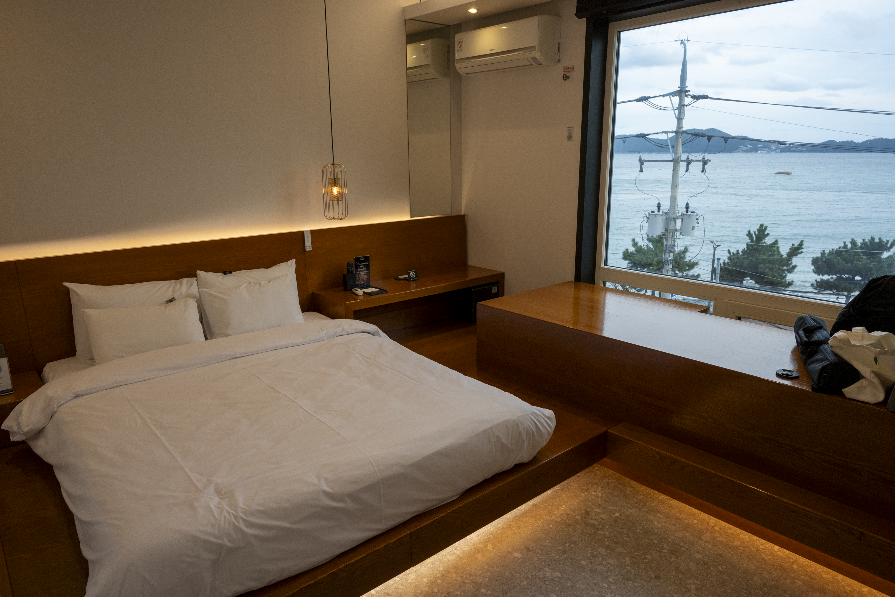 오션뷰여서 창문 밖으로 보이는 방 안은 좋았다. 자동 블라인드도 있었다.