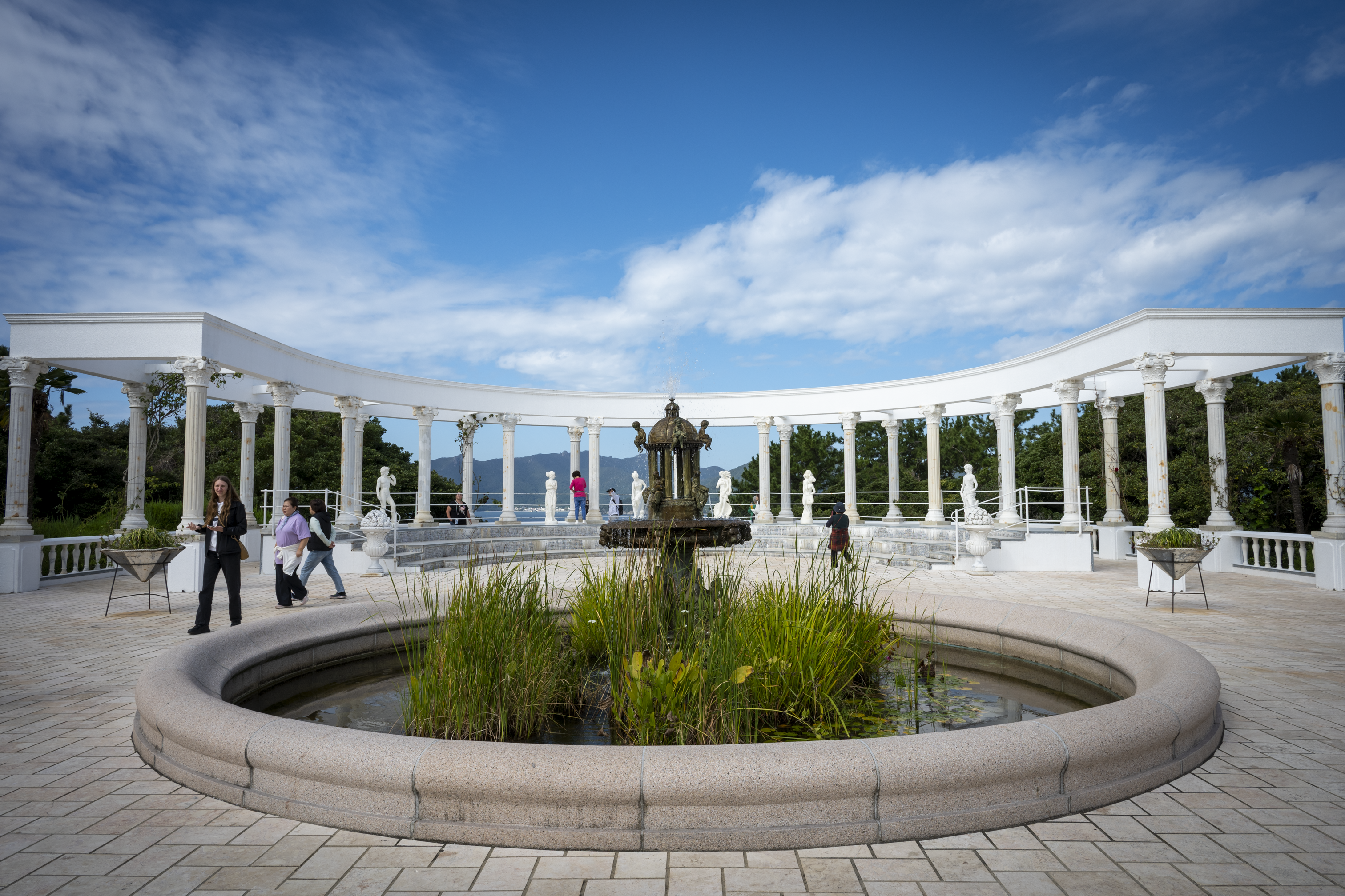 여기서 티라미수랑 아메리카노를 마셨다. 카페가 오션뷰 자리도 있는데 사람들이 미리 선점해서 앉을 수 없었다. 바로 앞에는 이런 뜰이 있다.