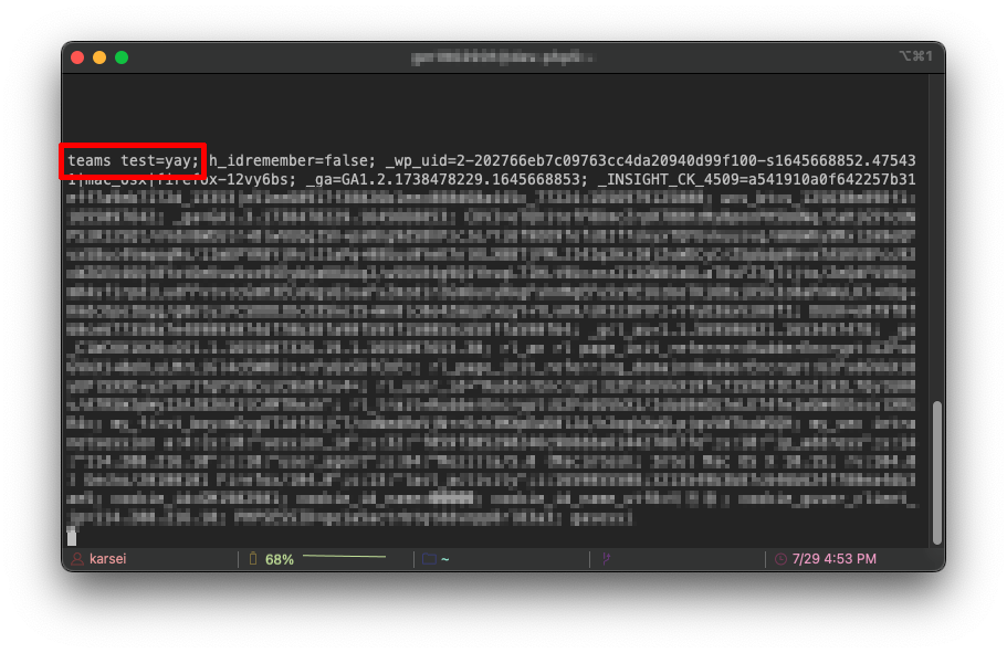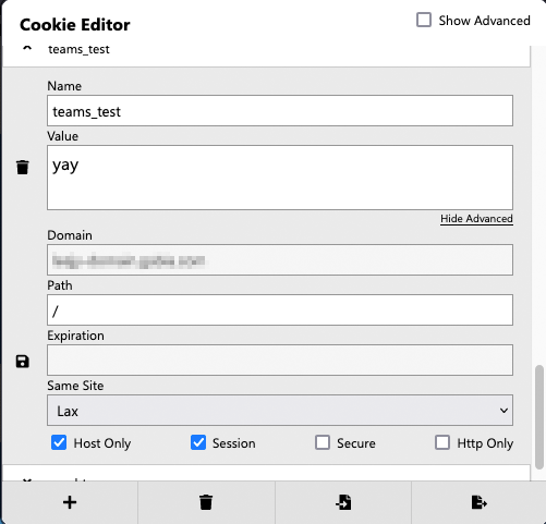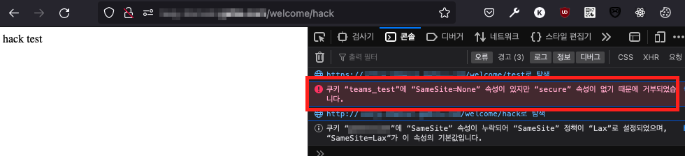 "teams_test" 라는 이름으로 httpOnly 와 secure 속성을 가진 쿠키를 사용했을 때와 안했을 때를 관찰하고, 그 차이점을 알아보는 것이 목적이다.