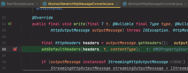 계속 진행하면 똑같은 이유로 각 MessageConverter 들을 찾을 때 사용하기 적절한 Converter 를 찾고 나면 write 할 때 해당 Converter 를 사용하도록 하고 바로 반환하는 로직이 있다.